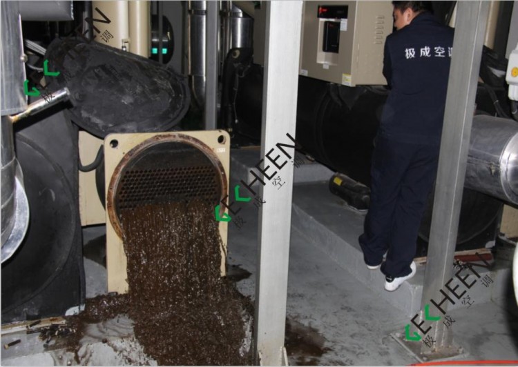 空调效果,频繁报警,电费增加;严重则会引起管道和换热设备堵塞,设备部件被腐蚀穿孔,造成机组部件损伤,缩短设备寿命,为用户引来极大的损失。因此,定期水质检测和化学清洗维保是必要的。